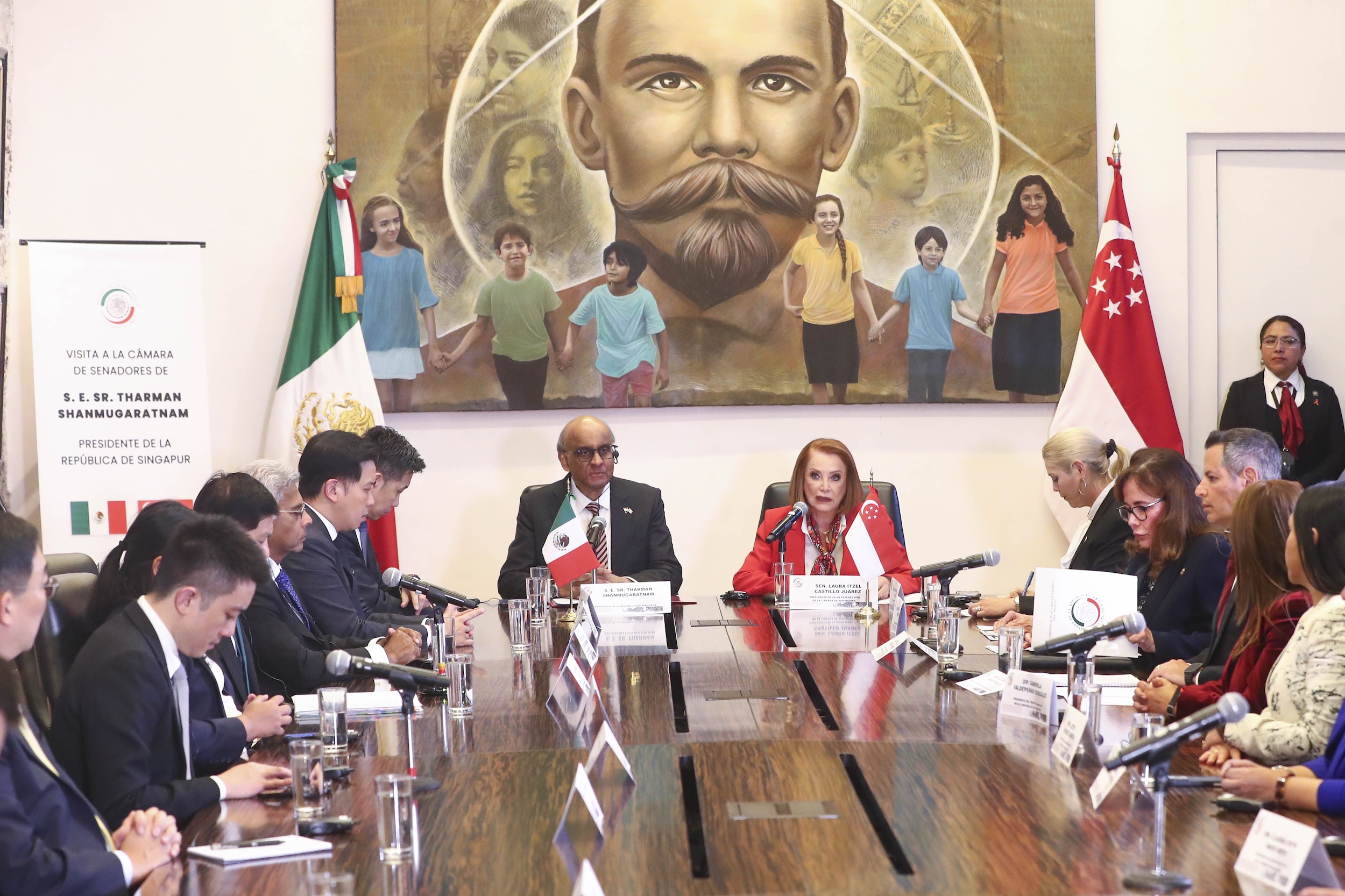 En la Casona de Xicoténcatl, antigua sede del Senado de la República, se realizó el encuentro entre la presidenta de la Mesa Directiva Laura Itzel Castillo Juárez y el presidente de la República de Singapur, Tharman Shanmugaratnam en el marco de la visita oficial con motivo del medio siglo de relaciones diplomáticas entre ambas naciones.